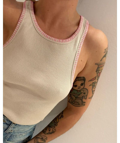 Ultimi Pezzi Quick view Carrello Lista dei desideri Frontstreet top costine bianco 115,00 € Top in costina con passamaneria perline sul collo e punto cavallo sul fondo