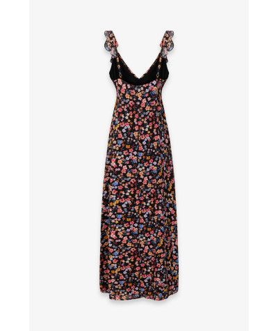 Abito Lungo In Georgette Con Volant Sulla Scollatura