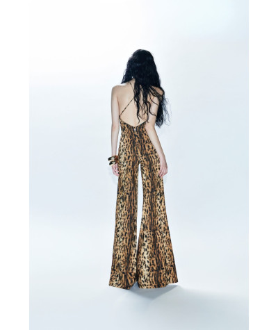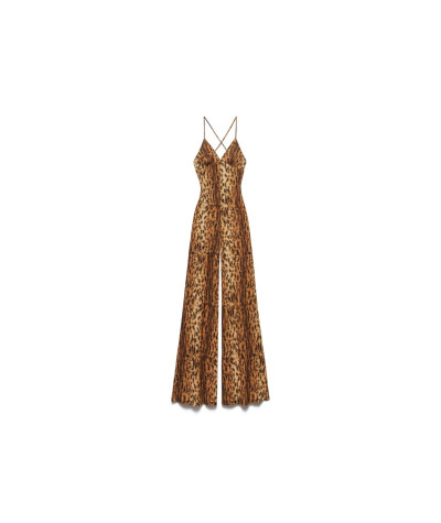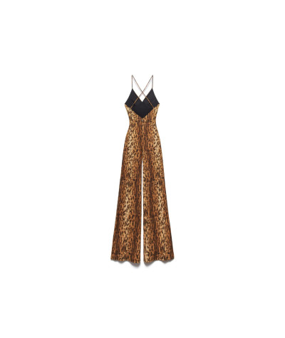 Tuta lunga animalier con scollo a V e spalline sottili con incrocio sulla schiena.
