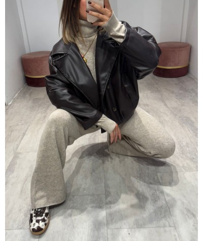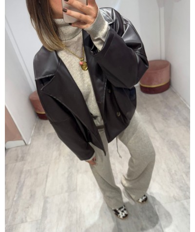 Haveone giacca ecopelle modello bomber moro
