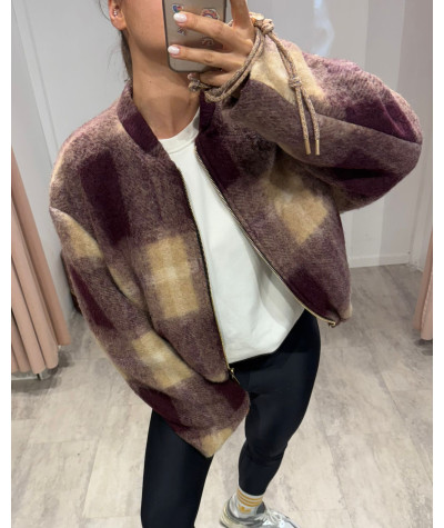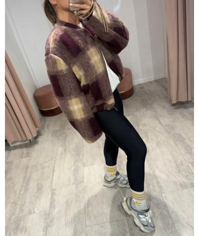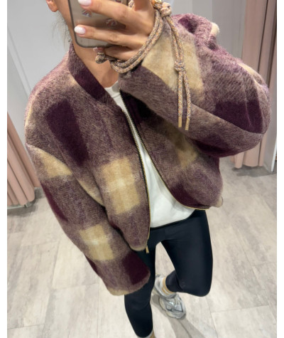 Haveone bomber in panno lana check prugna