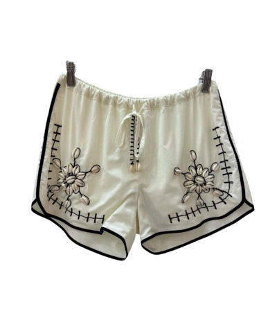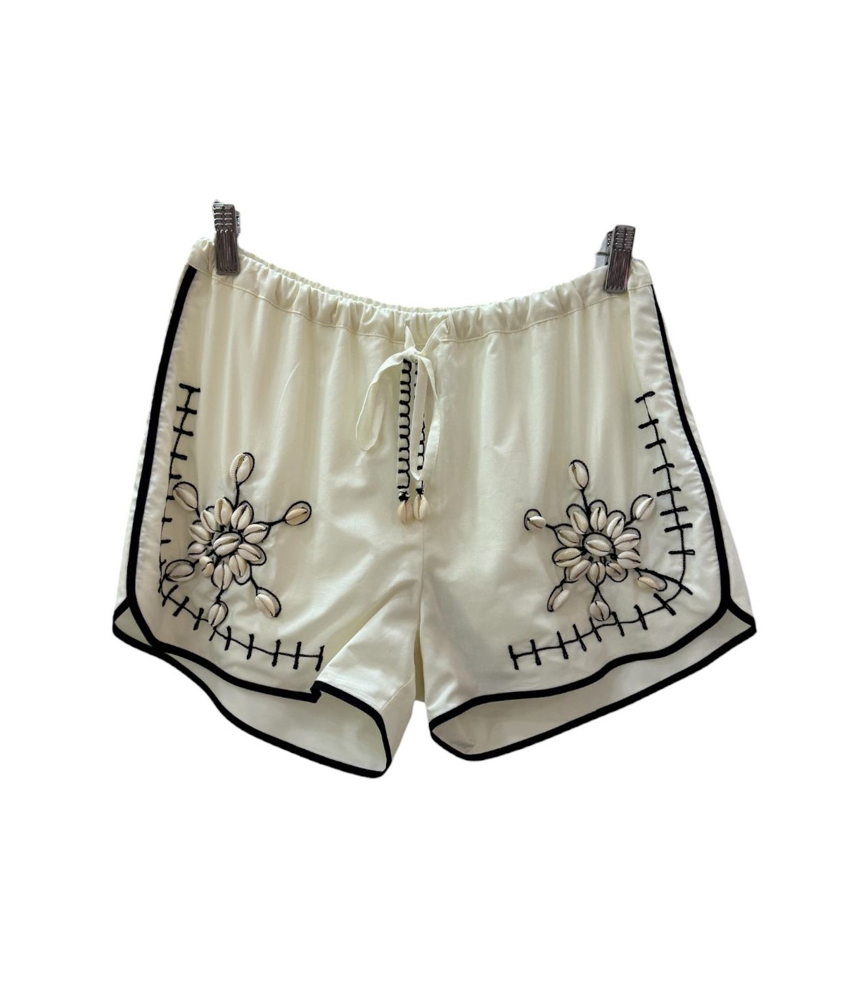 Shorts con ricami e conchiglie applicate a mano