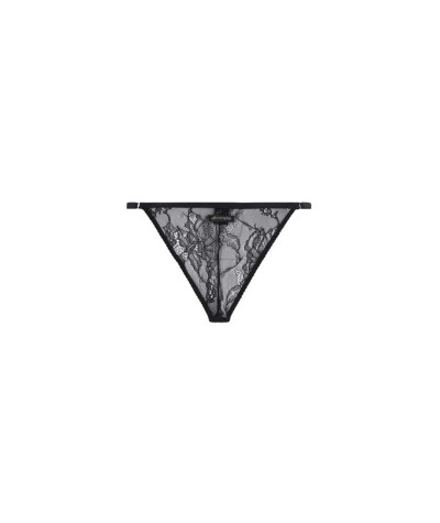 Slip tanga dal design sensuale e femminile, realizzato in lycra stampata animalier e impreziosito da inserti in pizzo nero.