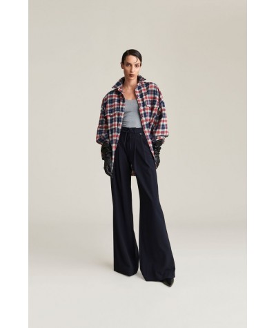 Un capo d’ispirazione sartoriale, pensato per look soft ma decisi. I pantaloni Arethea rileggono il classico gessato in chiave relaxed e contemporanea. Il taglio ampio con pinces e la cintura coordinata valorizzano il punto vita, mentre il tessuto in viscosa accompagna i movimenti con naturalezza.