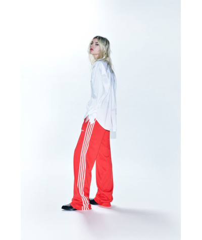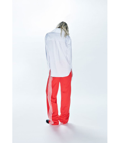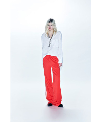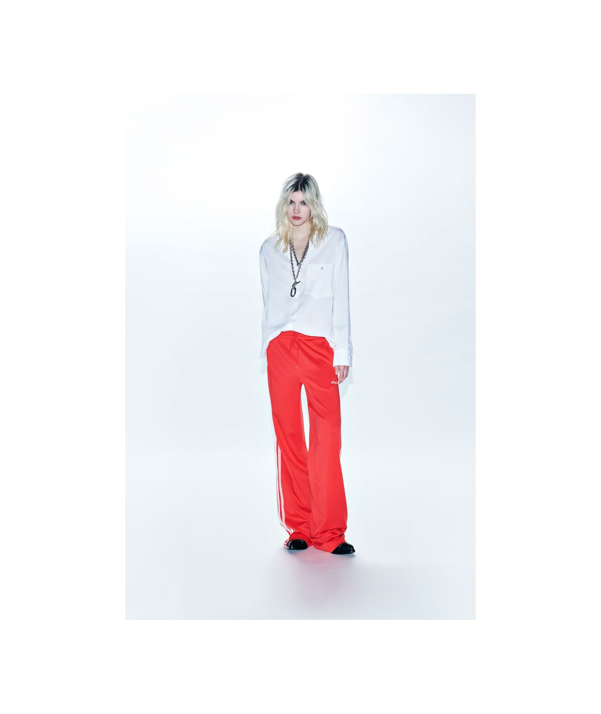 Pantalone in simil tuta, bande a contrasto, coulisse in vita e tasche laterali.