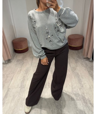 Haveone felpa ricami grigia