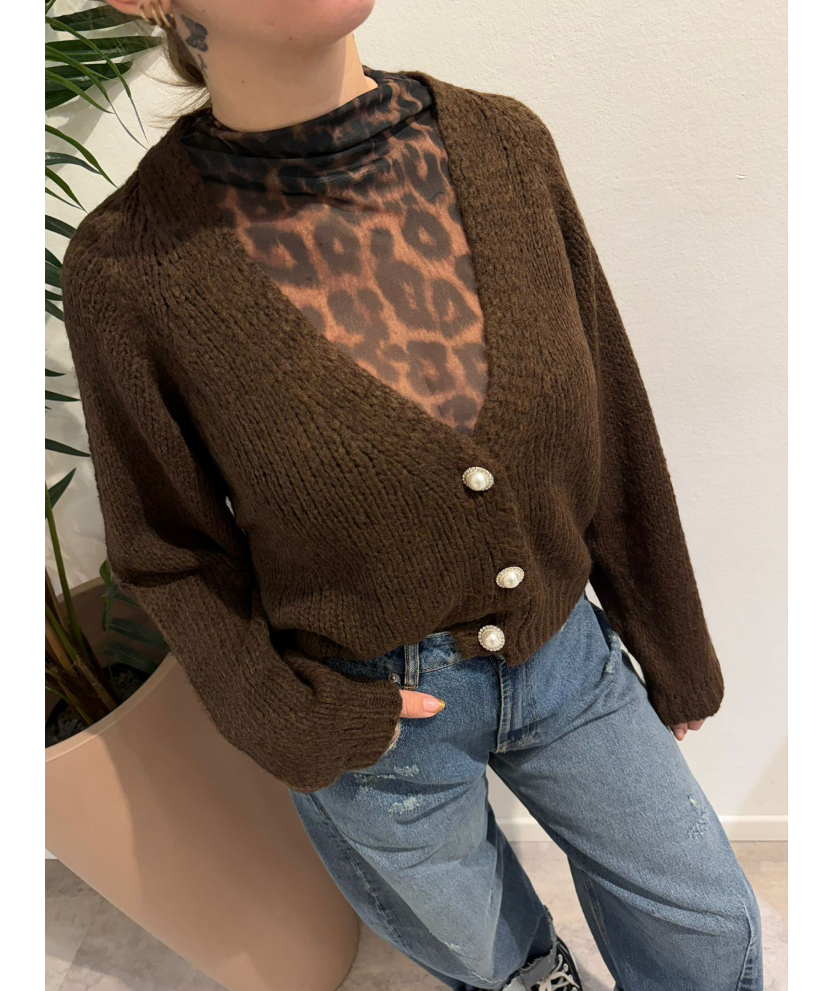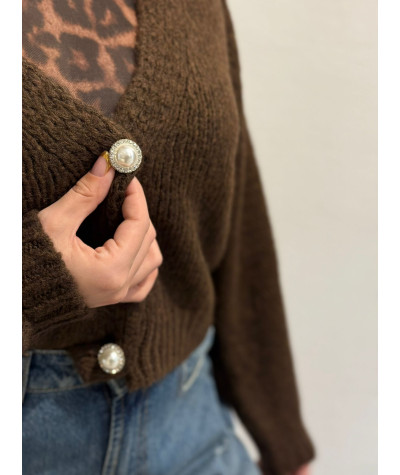 Haveone cardigan 3 bottoni gioiello moro