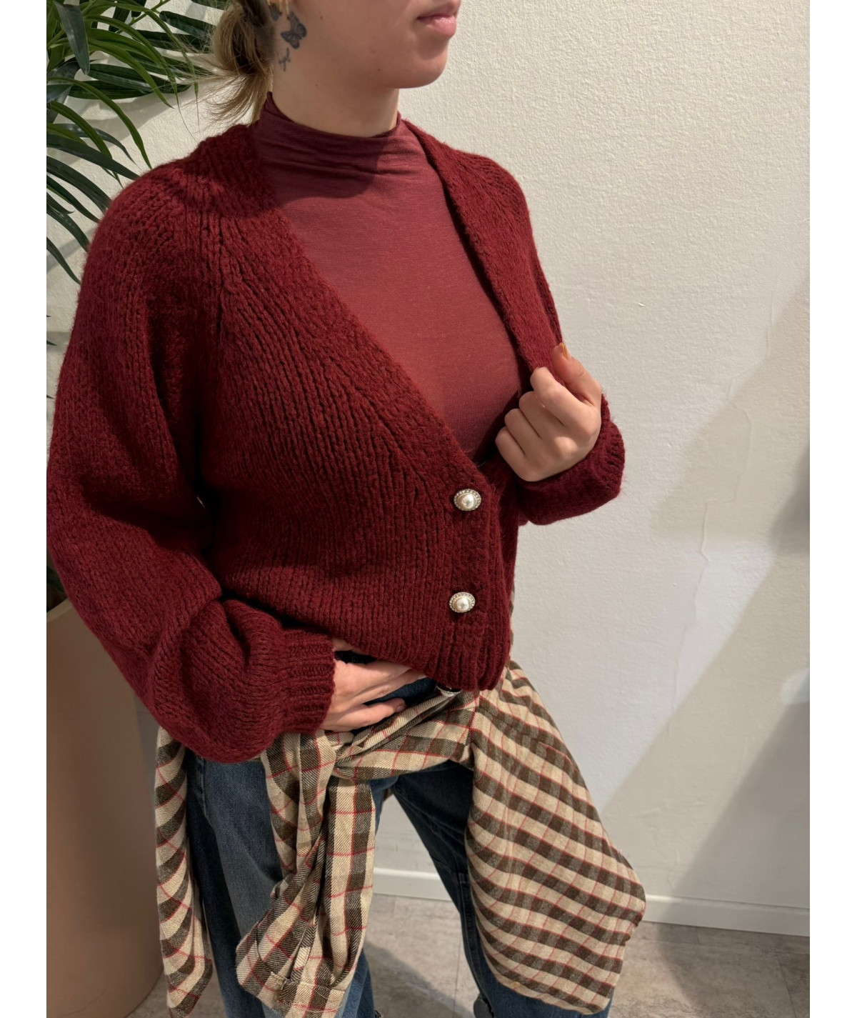 Haveone cardigan 3 bottoni gioiello vino