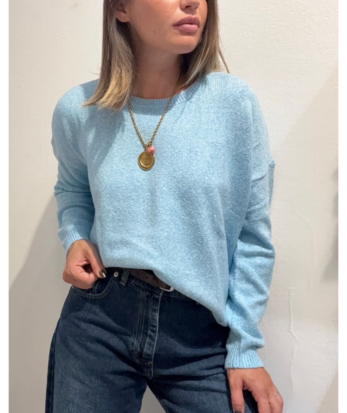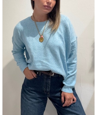 White whise maglia girocollo melange azzurro