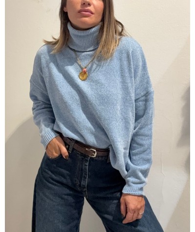 White whise maglia collo alto ciniglia azzurro