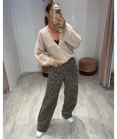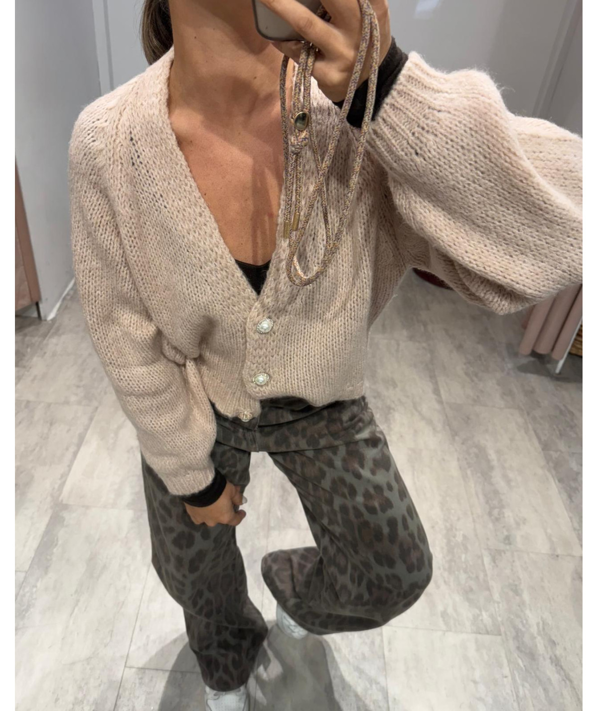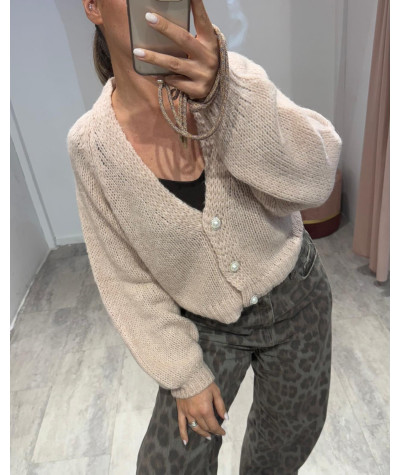 Haveone cardigan bottoni gioiello cipria