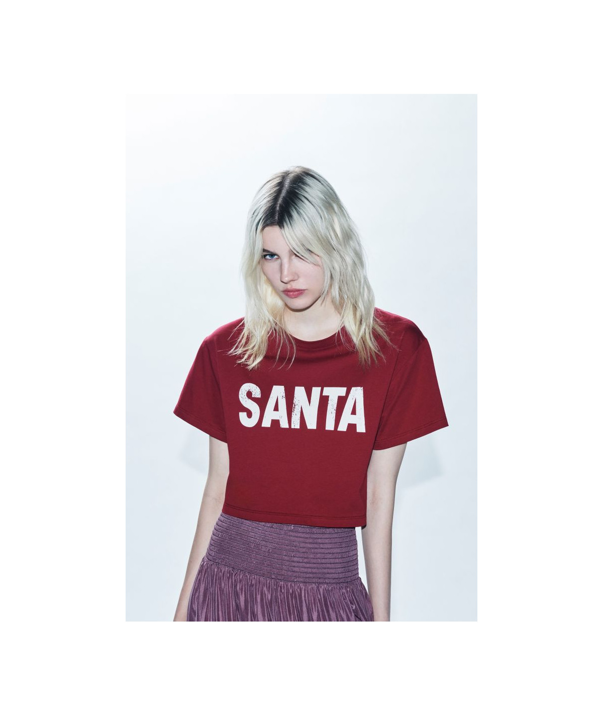 T-shirt crop over con lettering " Santa".