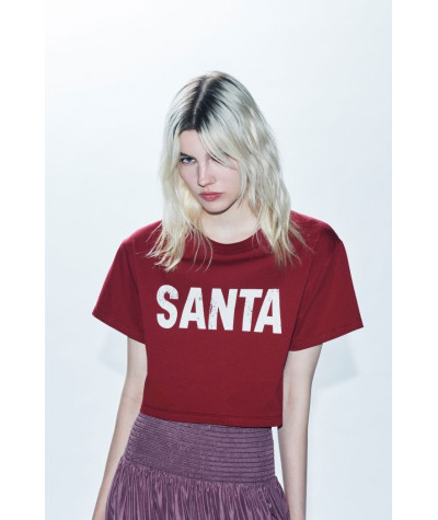 T-shirt crop over con lettering " Santa".
