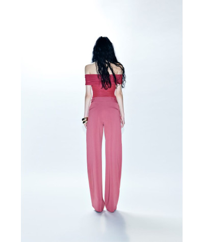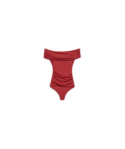 Body con scollo a barchetta e arricciature al fondo.