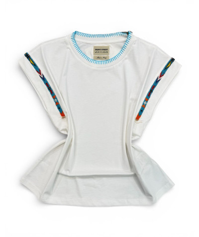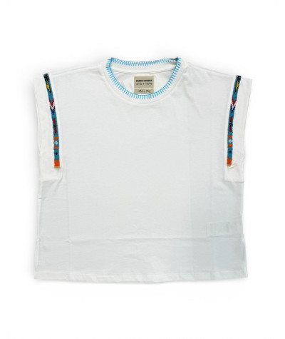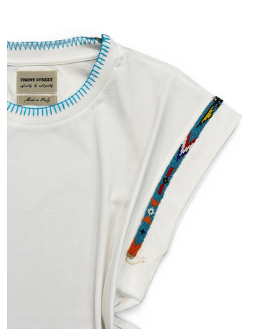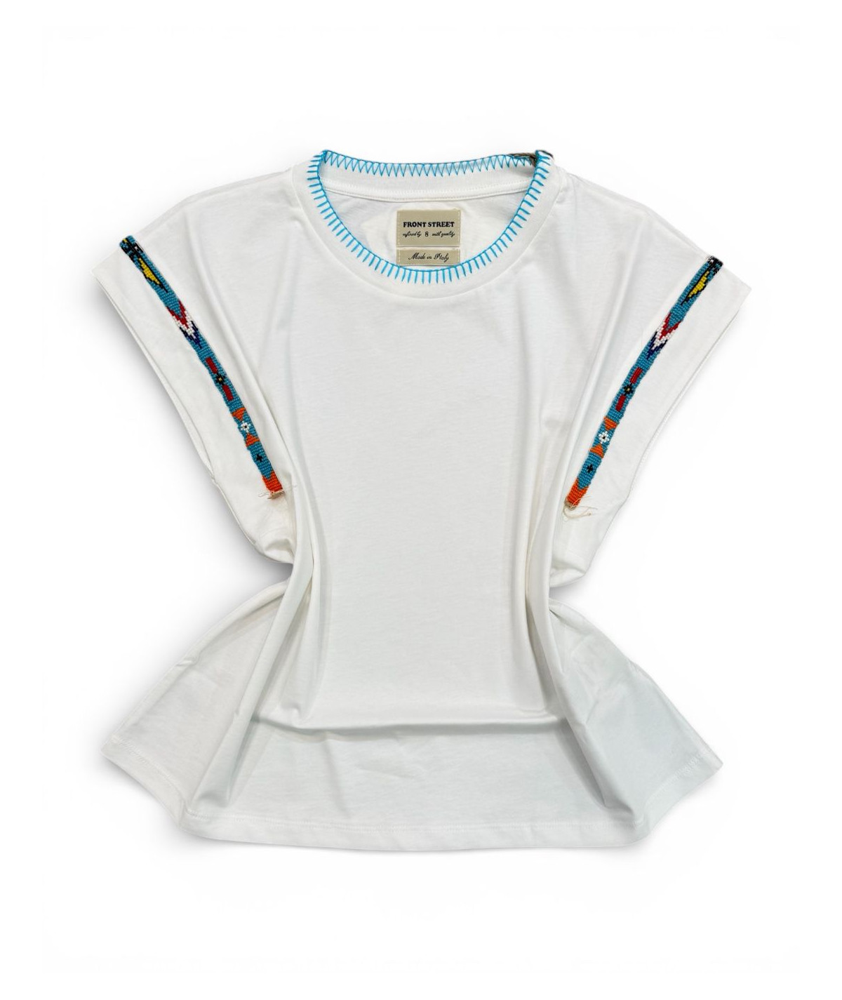 T-shirt boxy fit con passamaneria perline sulle maniche e punto cavallo sul collo