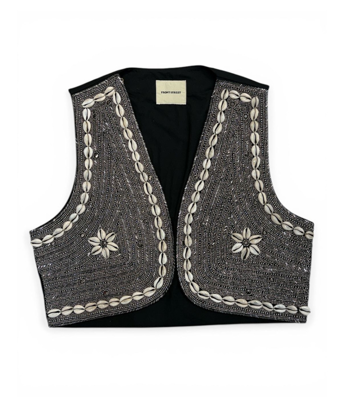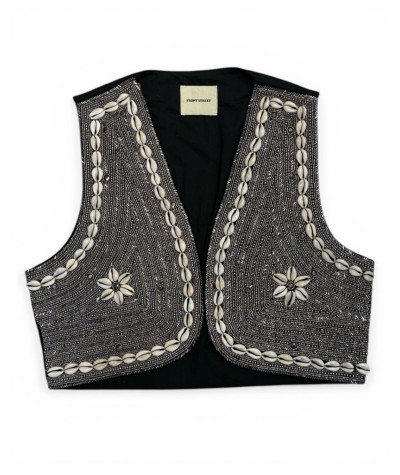 Gilet ricamato a mano con perline in metallo e conchiglie
