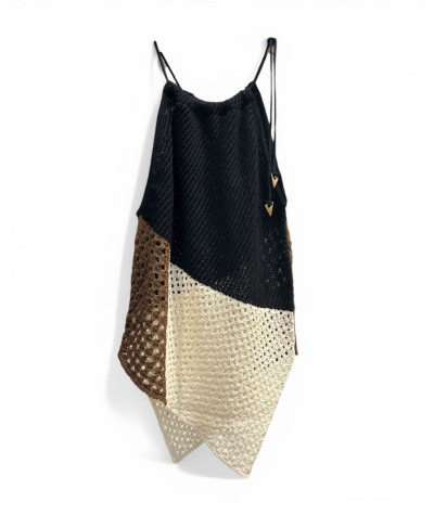 Akep top crochet panna/marrone/nero