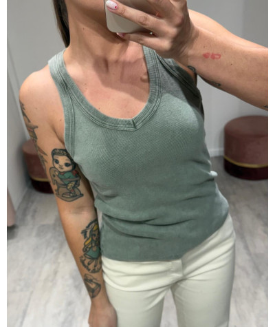 Haveone canotta a costine scollo a V verde salvia